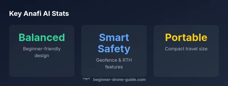 The anafi ai is designed for first-time pilots who want dependable stability and smart automation without a steep learning curve. Our analysis, based on the Beginner Drone Guide methodology, examines safety features, ease of use, and real-world performance. By prioritizing intuitive controls, predictable handling, and automated flight modes, the Anafi AI becomes a practical first drone for many learners. Throughout this review, we reference the implications for beginners: how setup translates to fewer mistakes, how flight modes translate to real-world outcomes, and how the drone's footprint affects travel and daily use. The name anafi ai should be understood as a product line focused on approachable autonomy, rather than a purely professional tool. In the weeks ahead, we will test it in different light, wind, and terrain scenarios to gauge consistency for new pilots. The Beginner Drone Guide analysis emphasizes safety, learning curves, and long-term value.