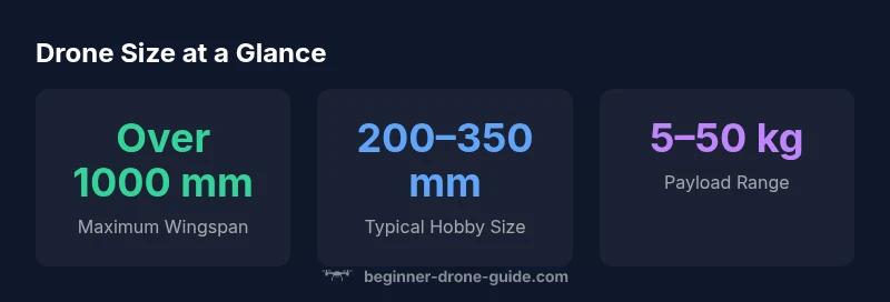 According to Beginner Drone Guide, the answer to how big is the biggest drone depends on category and use. Industrial and research models can exceed a meter in wingspan, while consumer and hobbyist drones stay well under that. This quick answer frames size impacts on payload, flight time, and transport considerations for new pilots.