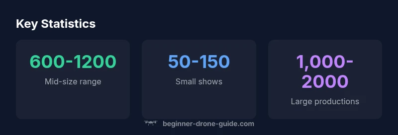 Drone show counts vary widely with show size and goals. Small events may use 50–150 drones; mid-size productions 600–1,200; and large spectacles 1,000–2,000 drones, with some exceedances in the thousands for flagship shows. So, how many drones in a drone show? This planning question frames your approach, balancing scale with safety. According to Beginner Drone Guide Analysis, 2026, most productions fall in the 600–1,200 range when planning a compelling, synchronized display.