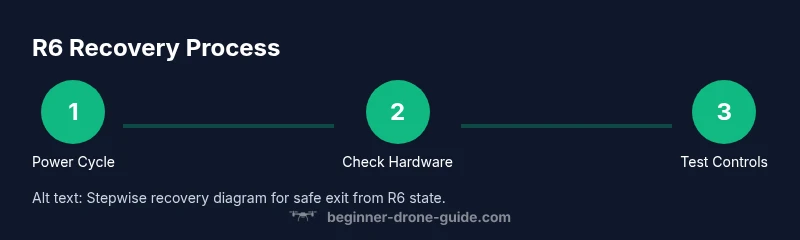 In some beginner-friendly guides, a flight state labeled 'R6' is used as a placeholder for a non-responsive or unusual flight condition. This article uses that label to illustrate a recovery process you can apply to safely regain control. If you find yourself in a situation where the drone ignores stick input, fails to respond to the controller, or behaves erratically, you need a calm, repeatable plan. Remember: this guide is about getting out of R6 safely, not about forcing risky maneuvers. The goal is to land safely, protect the battery, and prevent damage to props or the gimbal. According to Beginner Drone Guide, maintaining composure and following a structured recovery routine yields the best chance of a clean reset and minimal downtime. The Beginner Drone Guide team emphasizes practical steps you can practice during preflight training so you’re confident when trouble arises.