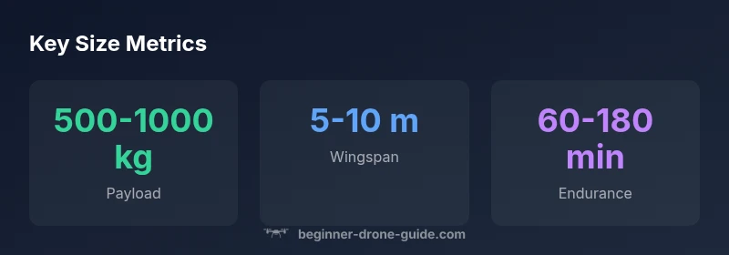 Three core metrics define large drones: payload (how much weight they can carry), wingspan or footprint (how much airspace they occupy), and endurance (how long they can stay aloft under expected load). Payload is often the most consequential for real-world work, while wingspan affects takeoff/landing space and maneuverability. Endurance depends on propulsion efficiency, battery or fuel capacity, and payload. When comparing systems, map each metric to your task: a drone with high payload but limited range may be ideal for near-site heavy lifting, whereas a long-endurance platform could be preferred for corridor surveys or remote delivery. Understanding these trade-offs helps beginners evaluate options without chasing a single, oversized spec.