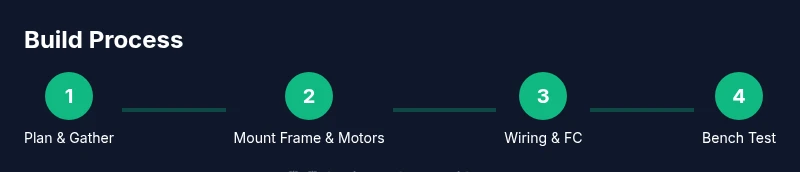 Common early mistakes include mismatched ESC/motor pairs, reversed motor wires, uncalibrated sensors, and underpowered batteries. If you notice drift, recheck the IMU calibration and confirm that all motor directions are correct. A shaky hover often indicates prop balance or vibration; swap or balance props and recheck mounting screws. Always perform a controlled bench test with the propellers removed or covered until you are confident in the setup. Save a simple checklist to avoid skipping steps, and remember to follow safety protocols at all times to protect yourself and bystanders.