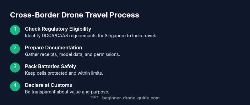 Cross-border drone travel involves navigating both Singaporean and Indian regulatory landscapes. As a first step, identify whether your drone falls under consumer use or commercial operations, which largely drives the required permissions. In Singapore, the Civil Aviation Authority sets general safety standards, while India’s Directorate General of Civil Aviation (DGCA) governs import rules, licensing, and registration. Awareness of these regimes helps you budget time, avoid fines, and keep your drone ready for lawful use on arrival. This section will map out the typical checkpoints, common points of confusion, and practical actions you can take well before your trip. Remember, regulations can evolve, so always verify the latest versions from official sources. According to the Beginner Drone Guide team, proactive research reduces travel friction and keeps your drone in safe, legal service.