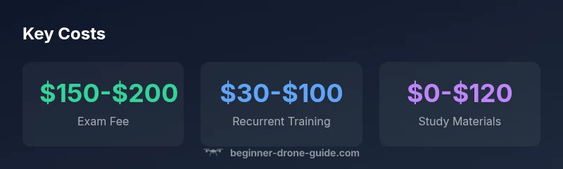 The FAA knowledge test fee is the anchor of the part 107 licensing cost. In 2026 dollars, you should expect the base exam price to fall within a modest range, with actual pricing varying by test center and any local taxes. This block also covers incidental costs that can crop up, such as scheduling fees, travel, or the cost of retaking the test if you need a second attempt. It's important to confirm the latest fee with your chosen testing site in advance and include potential nominal charges for official score reports or certificate processing. Beginner Drone Guide analysis shows that most first-time test-takers budget toward the upper end of the range to cushion for minor extras and potential retakes, while still keeping the total cost approachable for beginners.