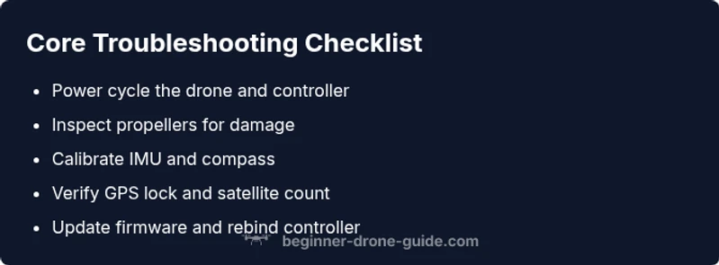 The most common causes for a drone not flying are power issues, calibration failures, and firmware or radio-link problems. Start with a power cycle, verify battery health, ensure GPS lock, and rebind the controller if needed. If the issue persists, follow the diagnostic flow below for a systematic fix.